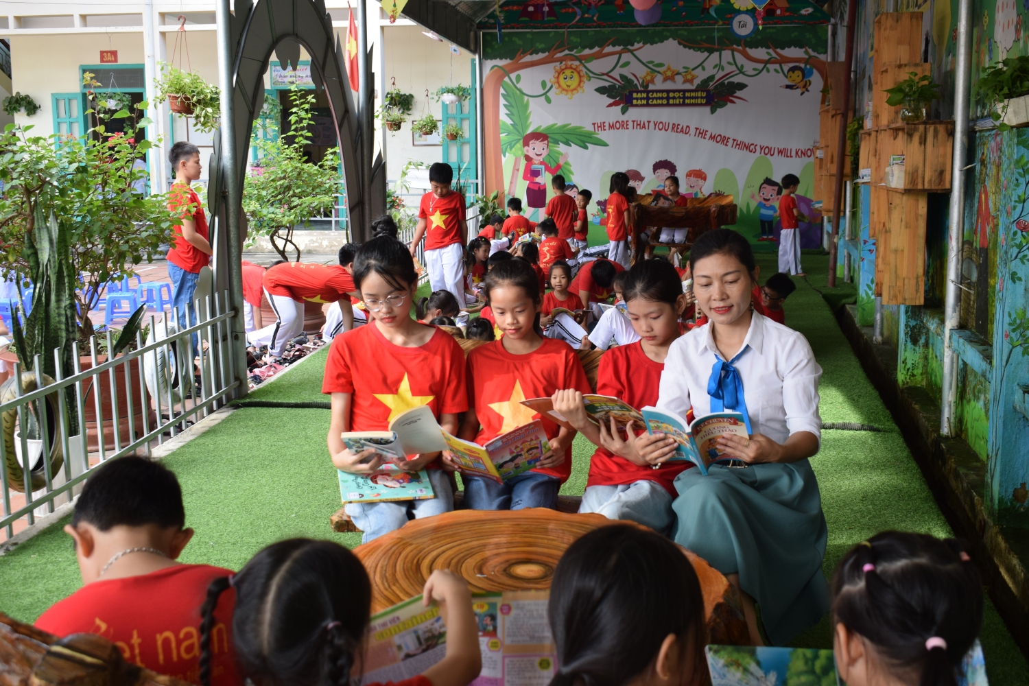Ngay sau lễ phát động, phát biểu hưởng ứng, các em học sinh toàn trường đã tham gia đọc sách tại xe sách lưu động, tại sân trường... Có lẽ đây là điều mà các em học sinh mong chờ nhất để được khám phá những cuốn sách hay, những câu chuyện ý nghĩa, thú vị.