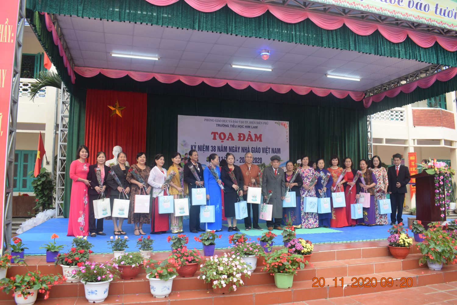 Thay mặt Ban giám hiệu, cô Đinh Thị Thanh Nhàn – Bí thư Chi bộ - Hiệu trưởng nhà trường đã phát biểu khai mạc, ôn lại ý nghĩa của ngày 20/11 và trao tặng các món quà lưu niệm cho các thầy cô giáo đã từng công tác tại nhà trường như một lời tri ân đến những đóng góp, cống hiến không mệt mỏi của các thầy cô giáo trong suốt bề dày thành tích của nhà trường. Đồng thời động viên và khuyến khích các thầy cô giáo tiếp tục phấn đấu vì sự nghiệp trồng người.