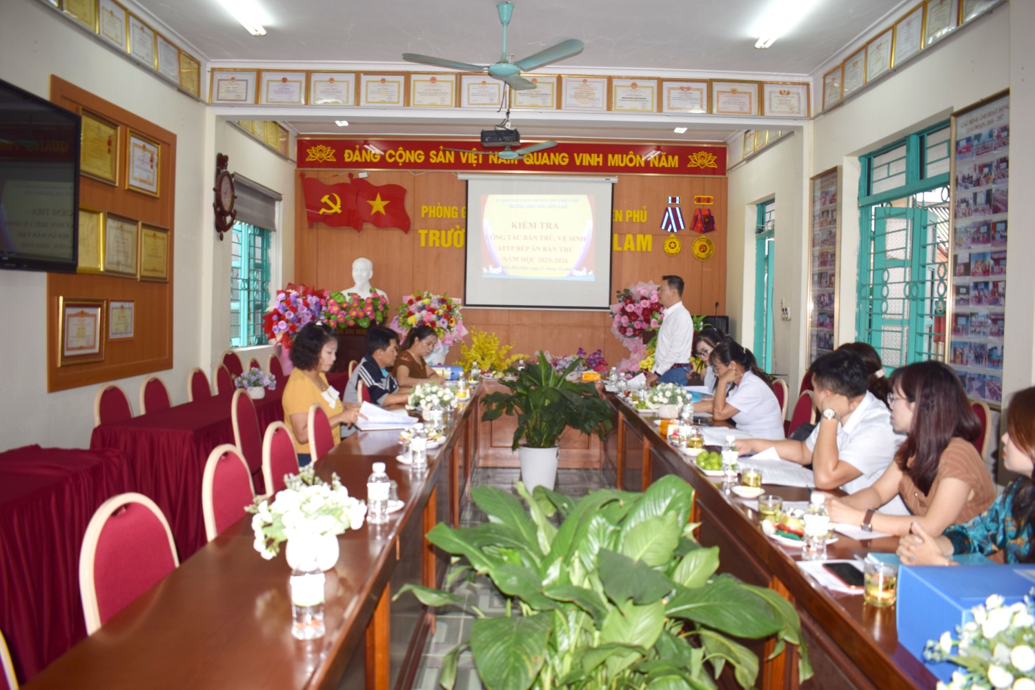 Công tác ATTP: Nhà trường đã xây dựng Kế hoạch đảm bảo VSATTP với nội dung và biện pháp cụ thể, thiết thực và triển khai hiệu quả. Công tác tự kiểm tra được thực hiện định kỳ và đột xuất khi cần thiết. Qua các đợt tự kiểm tra, nhà trường luôn đảm bảo đầy đủ hồ sơ, sổ sách, có biên bản kiểm tra lưu trữ theo quy định. Nhà trường chưa xảy ra tình trạng ngộ độc thực phẩm hoặc sự cố mất an toàn thực phẩm trong công tác bán trú.