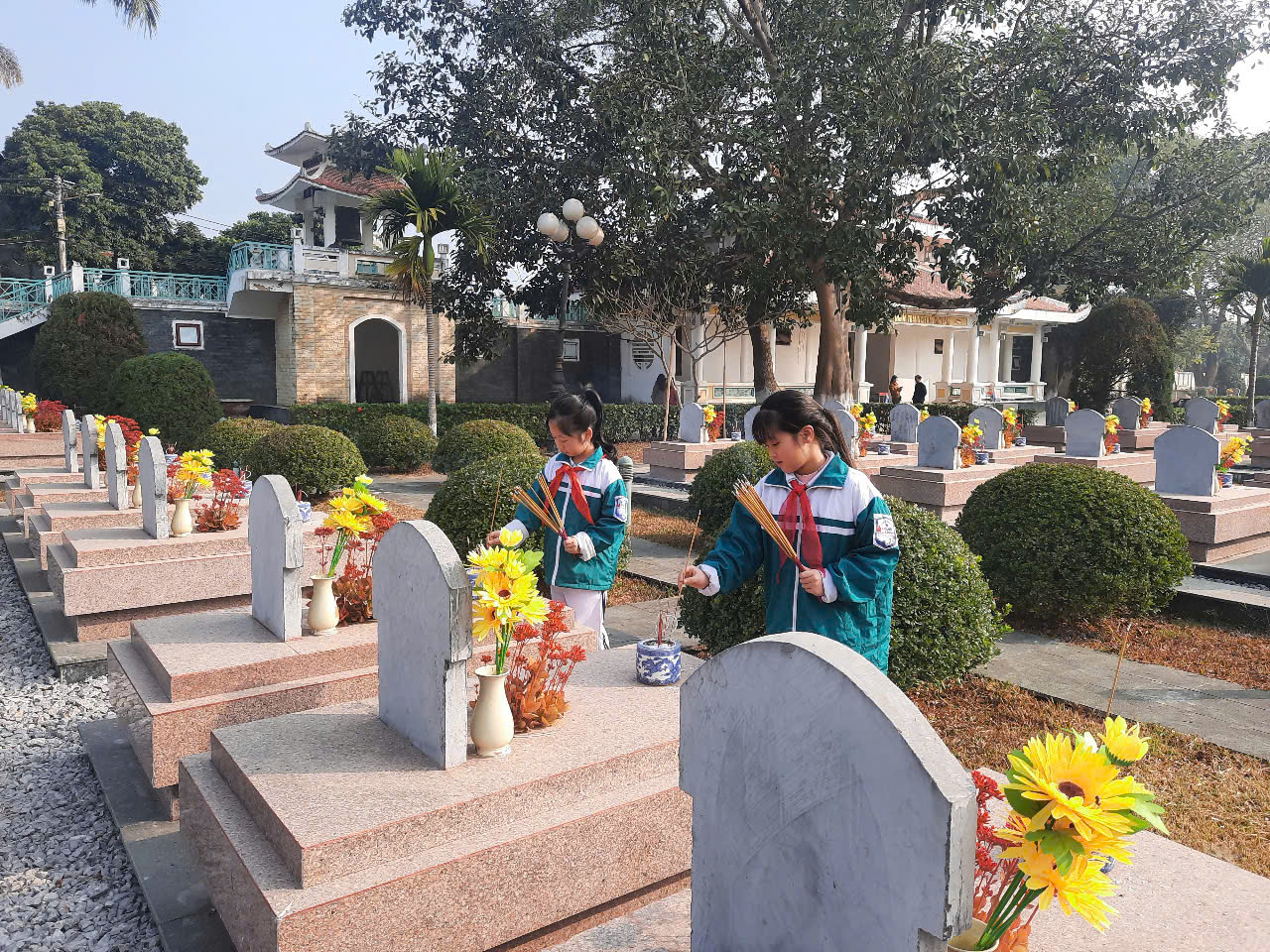 Chương trình thăm viếng nghĩa trang liệt sĩ là một trong những hoạt động thiết thực của các nhà trường nhằm giáo dục lòng yêu nước, đạo lý “Uống nước nhớ nguồn” cho các thế hệ trẻ. Những nén hương thơm được thắp lên cùng những lời tri ân sâu sắc đối với các liệt sĩ như một lời nhắc nhở các thế hệ học sinh hôm nay và mai sau hãy sống sao cho xứng đáng với sự hy sinh cao cả của các thế hệ cha anh đi trước.