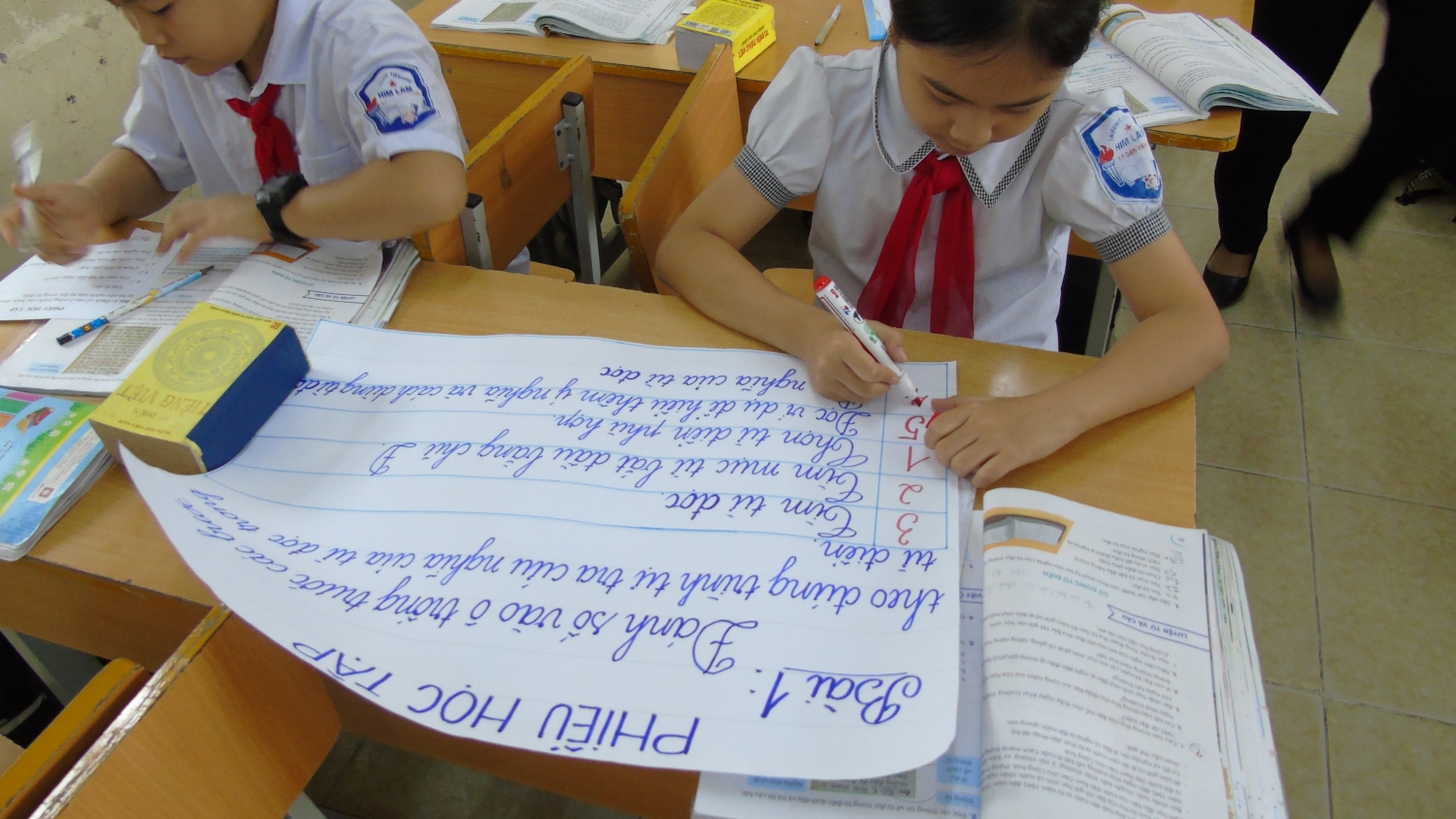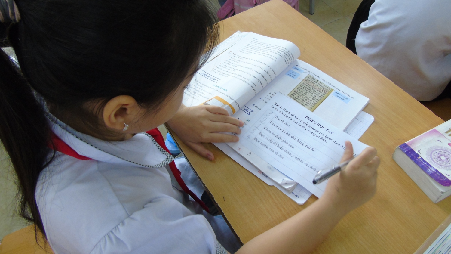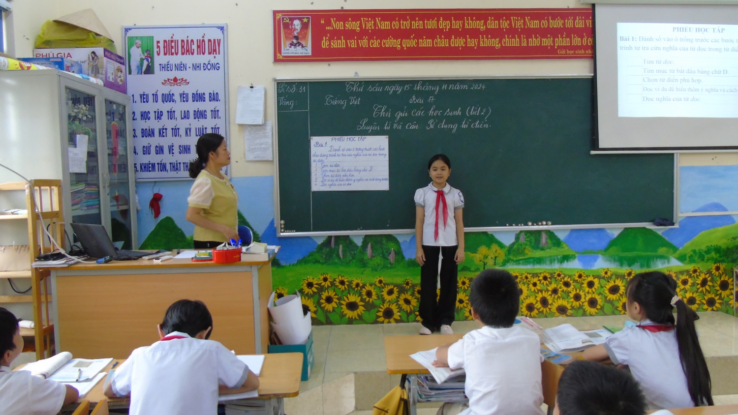 Với tinh thần đổi mới, tiết học đã mang đến cho học sinh một không gian học tập sáng tạo. Giáo viên đã vận dụng linh hoạt phương pháp dạy học, kết hợp ƯDCNTT để tổ chức trò chơi Plickers trong kiểm tra bài cũ, giúp học sinh ghi nhớ lại kiến bài học trước. Phần khám phá kiến thức giáo viên tổ chức cho học sinh thảo luận nhóm để các em biết sử dụng từ điển, biết đọc chữ viết tắt, biết tìm từ và tra nghĩa của từ, cụm từ trong quyển từ điển Tiếng Việt. Ngoài ra, giáo viên còn tổ chức cho các nhóm tra cứu nghĩa của từ trực tuyến trên internet bằng ipad và máy tính, Các em đã rất hào hứng tham gia học tập. Qua tiết học giúp học sinh nâng cao kĩ năng tìm hiểu từ điển, ứng dụng vào thực tiễn.